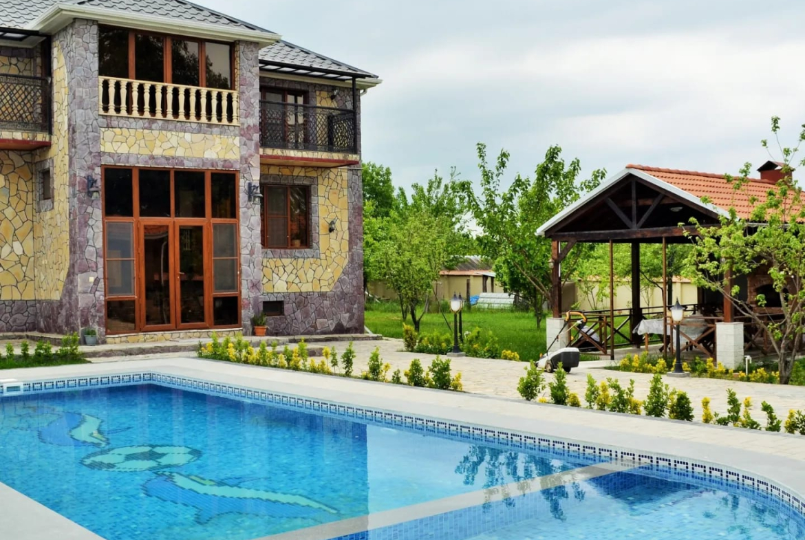 Həyətyanı sahədə hovuz və yay mətbəxi yerləşir – açıq havada yemək və istirahət üçün ideal şərait təqdim edir.